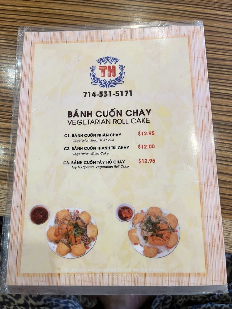 “ I visited Banh Cuon Tay Ho based on a childhood recommendation from my girlfriend, and it did not disappoint! The service was exceptional, and the food was authentically Vietnamese. You know you're in the right place when the staff greets you with a friendly yet efficient attitude and communicates in charmingly broken English. The tables are thoughtfully stocked with fish sauce and shredded pork, which beautifully enhance the flavors of the dishes. Shrimp Tempura I ordered the Shrimp Tempura, which came with an abundance of lettuce and other fresh vegetables. The way you eat it--wrapping the crispy shrimp in lettuce--creates the ultimate combination of textures and flavors. The portion size is incredibly generous, easily enough to feed 3-4 people. My girlfriend and I even had leftovers! For just $13.00, this might be some of the best shrimp tempura you'll find. 10/10 Pork and Rice with Pickled Vegetables This dish reminded me of a traditional com suon nuong, a Vietnamese grilled pork chop served with rice. While I usually enjoy bold flavors with additions like egg rolls and steamed egg, this version was delicious in its simplicity. The pork chop was savory, perfectly crisp on the outside, and tender on the inside--a melt-in-your-mouth delight. The pickled vegetables added a refreshing tang, making the dish feel both traditional and satisfying. 9/10 Banh Cuon (Rice Rolls) The banh cuon stole the show! This dish features delicate rice rolls stuffed with meat, paired with bean sprouts and Vietnamese meatloaf. The combination was nothing short of perfection, especially when paired with the fresh lettuce from the tempura. Filling, flavorful, and downright delicious, this is some of the best banh cuon I've ever had. 10/10 Tip: They accept apple pay and cash :). You will definitely see me scrambling back to Westminister again for this! ”
